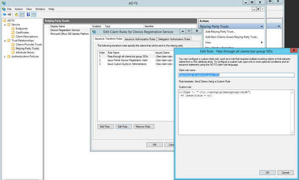 Ultimately, I think these articles do answer the question of how to create an AD FS Issuance Authorisation rule, but I can’t point very clearly to the place on these pages that spells it out, and I do think there is a lot of confusing information about this in other places which may lead people astray. Namely, there is a lot of information that only concerns itself with the default Active Directory Claims Provider Rules and the Claims that come from request headers. Also, some of the most referenced AD FS + SharePoint content seems to have been written without authorisation rules in-mind. I want to try to clear some of that up in this post.