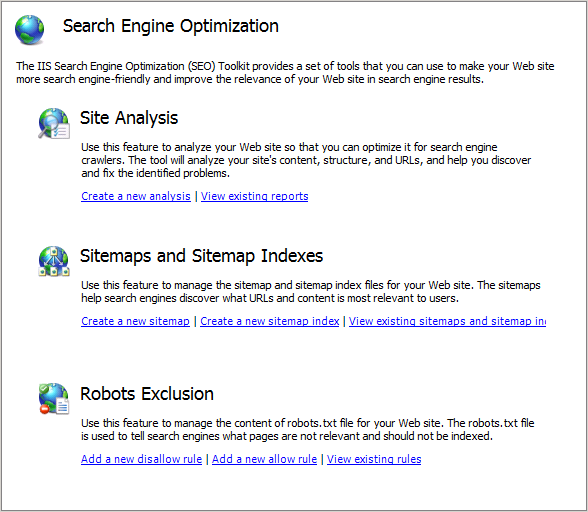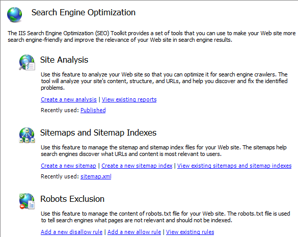 Everything that I’ve discussed so far can be run against any site that the SEO Toolkit user can browse to. Server access is completely unnecessary. However, there are two added tools that have to be run on the server. This should not be hugely problematic for the content owner, as these tools need to be updated relatively infrequently once they’ve been set up initially.