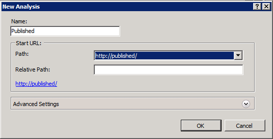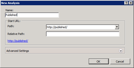 Click the first link on the SEO Toolkit landing page and Create a new analysis of your site.