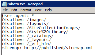 One thing to note is that the robots.txt file did not appear for me during testing until after I stopped and started the website in IIS. This is only an issue when it’s created for the first time, but worth noting. I believe this is also true for the sitemap.xml. file.